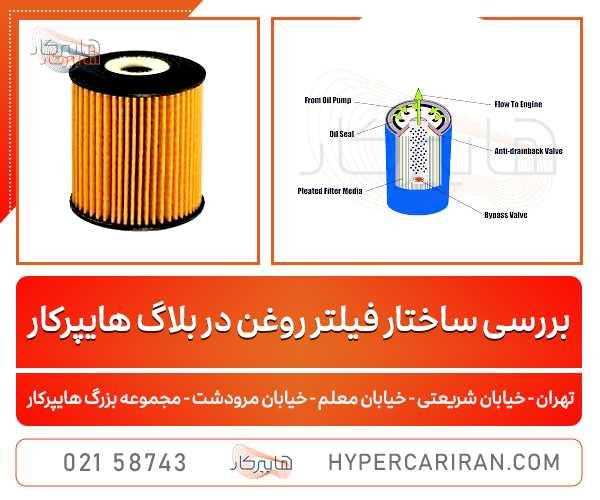 در اکثر فیلترهای روغن موتور، ساختار آن از بخشهای زیر تشکیل شده است: